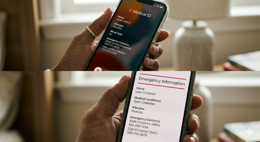 Why this matters: Paramedics and ER doctors can quickly identify allergies, blood types, and who to call, potentially saving your life without needing your passcode.