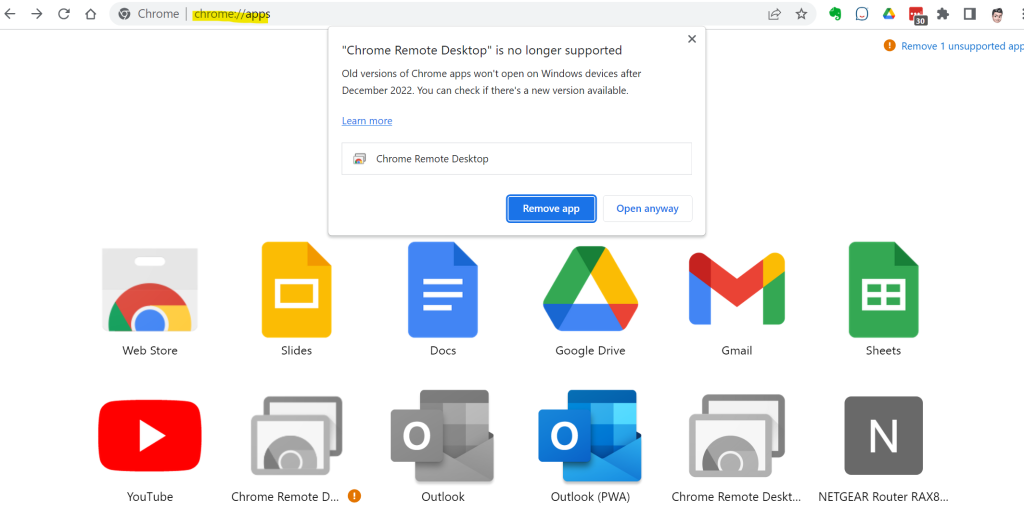 2. When prompted to “remove app”, right-click on the Chrome app you want to replace and select “Remove from Chrome”.